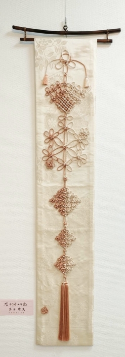 菊谷恭子先生と色の組み合わせ、結びの配列を考える時間がとても楽しいです。基本の結びをマスターして色々な作品作りを目指しています。